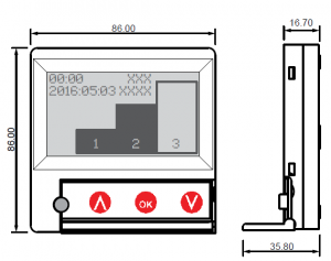 Dimensions: 86mm wide x 86mm high x 16mm deep Supplied with 14 metre connection cable (plug connection to auramode®, 4 wire to MVHR)