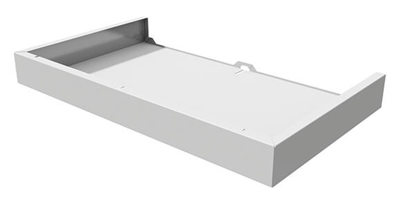 The cover has a depth of 74mm and the drainage pipe must be installed within this depth for the cover to be fitted. The drainage trap cannot be installed within this cover void, therefore it must be located in a suitable alternative position.
