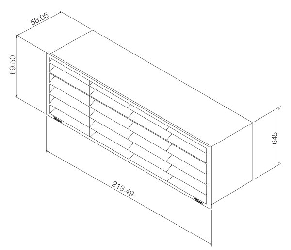 Dimensions: 64.5mm height x 213.5mm width x 58mm depth